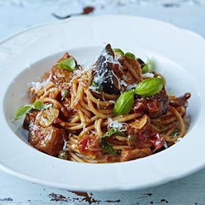 پاستا آلانورما سیسیلی از مجموعه دستورغذایی های جیمی الیور هست که یک پاستای گیاهی ایتالیایی است که با سسی از گوجه فرنگی، بادمجان، پنیر و ریحان تهیه می شود.