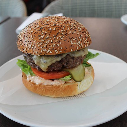 9- از سس چیمی چوری، همبرگرهای آماده شده، یک برش گوجه و خیار شور روی 2 برش از نان ها بذارید. یک لایه پنیر روی هر همبرگر بگذارید و آن ها را دوباره گریل کنید تا پنیر آب شود. 2 برش دیگر نان را روی همبرگرها بگذارید و آن ها را میل کنید.
