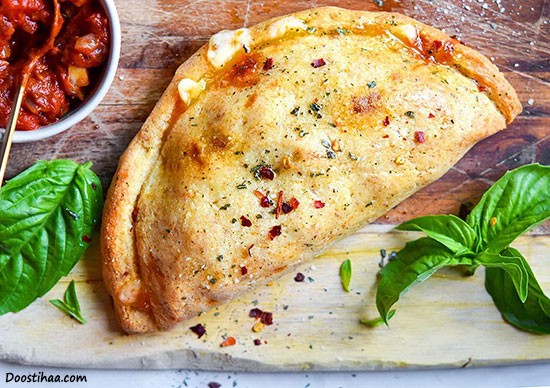 پیتزا کالزون نوعی غذای ایتالیایی و یکی از انواع پیتزا می باشد که به شیوه ها و با مواد اولیه متفاوتی تهیه و سرو می گردد. به پیتزای کالزون، پیتزای پیچیده شده هم می گویند که شبیه به نصف قرص ماه می باشد. البته باید بدانید که این نوع پیتزا به دلیل شباهت ظاهری انواع اولیه آن به شلوارهای پاچهگشاد مردانه به این اسم، نامگذاری شده است اما بعدها شکل ظاهری آن به شکلی کنونی خود درآمد. حال در این مطلب قصد داریم تا نحوه تهیه پیتزا کالزون خوشمزه را آموزش دهیم. شما می توانید برای دیدن آموزش این پیتزای فوق العاده به ادامه مطلب مراجعه کنید.
